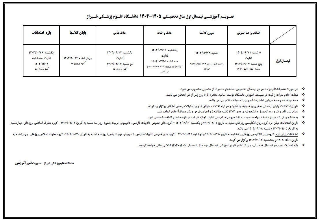 - تقویم آموزشی سال تحصیلی 1405-1404 تقویم آموزشی سال تحصیلی 1405-1404 گروه خبری : اطلاعیه های آموزشی,اطلاعیه های مهم کد خبری : 131617 کپی کلیدواژه